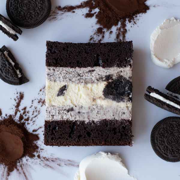 - Торт "Орео" - насыщенный шоколадный бисквит на французском какао, крем с крошкой печенья Орео и запеченный чизкейк Стоимость: 70 руб/кг