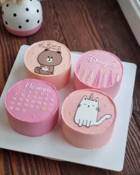 Оформление бенто тортов по идеям, референсам или фотографиям, которые вам нравятся - различные надписи, кремовые мазки, контурные или цветные рисунки