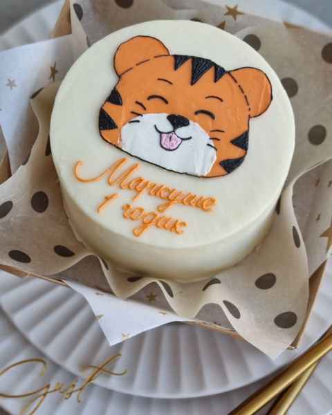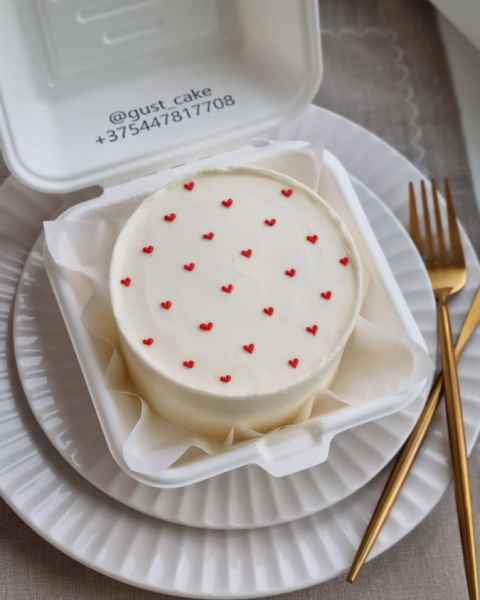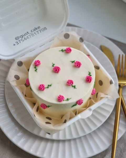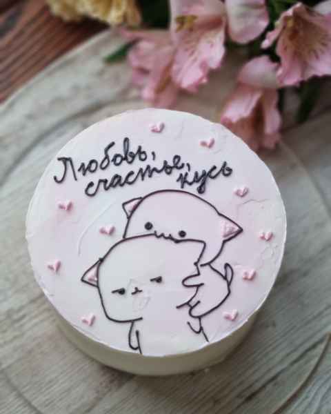 - Белый торт, надпись до 10 слов, маленькие рисунки (1-2 цвета, точки, сердечки, цветочки) - 38 руб